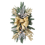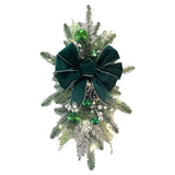 Measuring 45cm long and 20cm wide, this teardrop swag features natural rattan rings and plastic material adorned with berries, colorful balls, bowknots, pine cones, and LED light strings. Its exquisite workmanship ensures durability and longevity without fading.