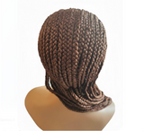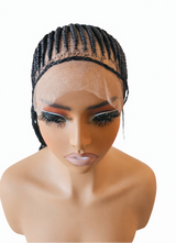 Elevate your protective styling with our premium hand-braided lace frontal wig. This unit features expertly crafted feed-in cornrows that transition seamlessly into a transparent lace front, giving you a natural-looking hairline that mimics hair growing directly from the scalp.